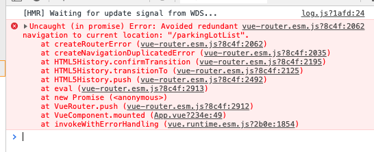 vue.js, vue-router push, 라우터 리다이렉션 오류, Error: Avoided redundant navigation to current location