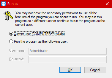 마우스 오른쪽 > 관리자 권한으로 실행(A)으로 실행하면 됩니다.