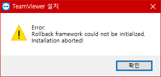 Error: Rollback framework could not be initialized. Installation aborted!, Windows 10 TeamViewer, 윈도우10 팀뷰어 설치 오류