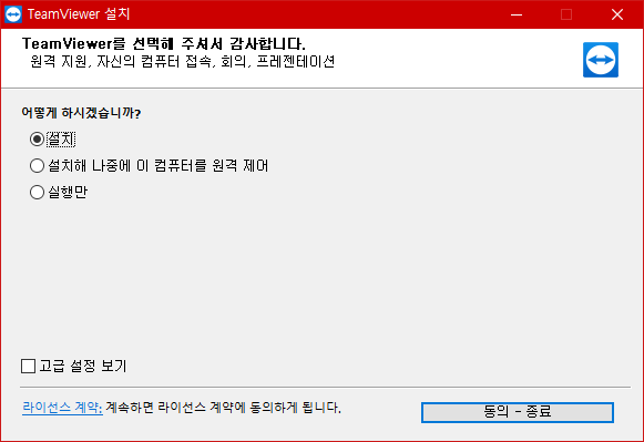 팀뷰어 설치 옵션