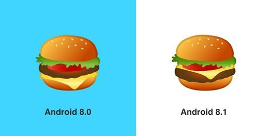 안드로이드 8.0의 햄버거 이모티콘에 치즈가 패티아래에 있어서 매우 불편했었습니다.