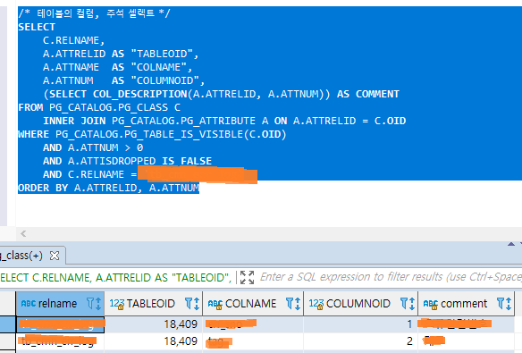 PostgreSql 테이블, 컬럼의 주석, 코멘트 조회 셀렉트 쿼리