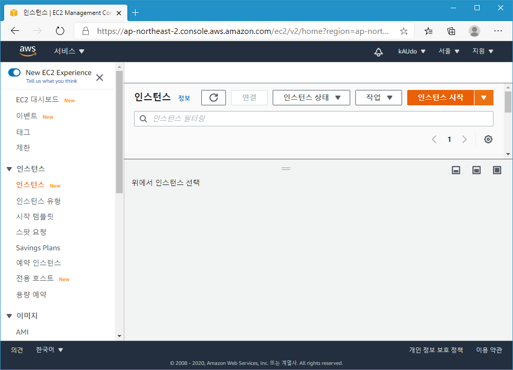 2. 인스턴스 > 인스턴스 > 인스턴스 시작