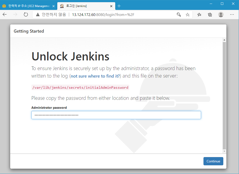 8. 복사한 비밀번호 붙여넣기 > Continue