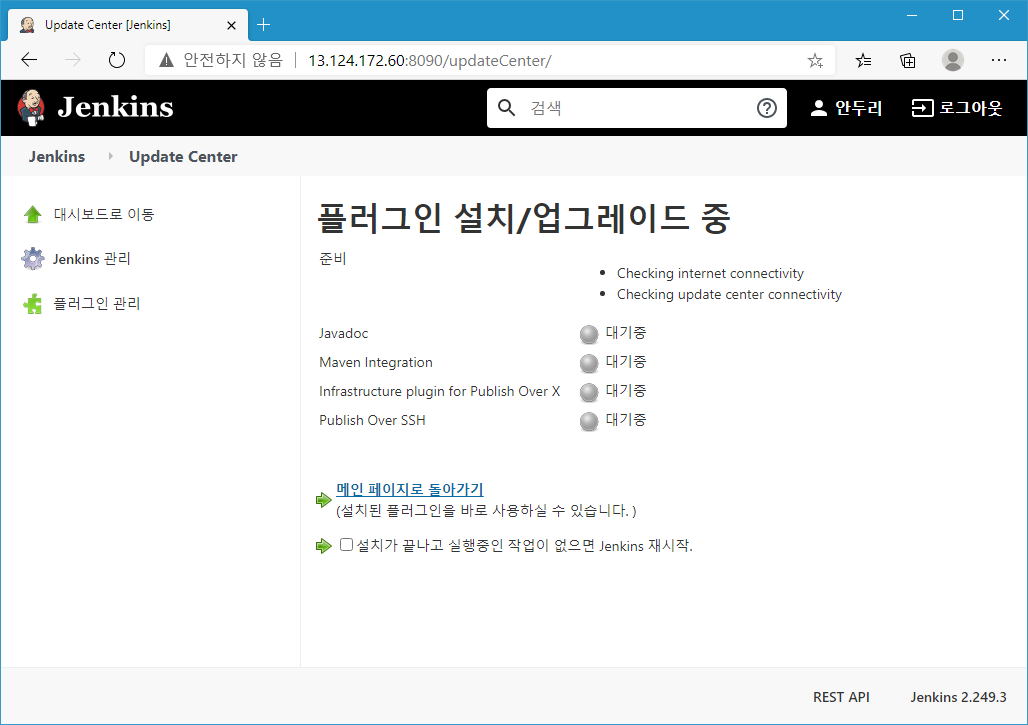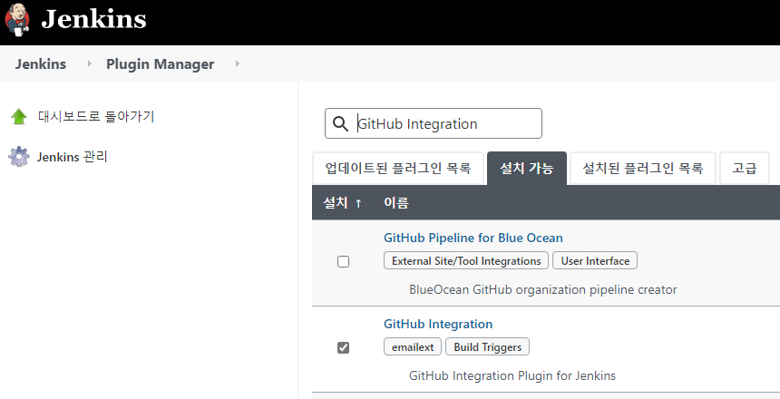 1. 젠킨스 > Jenkins 관리 > 플러그인 관리