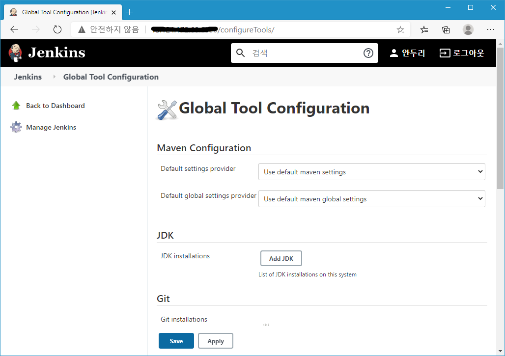 1. 젠킨스 > Jenkins 관리 > Global Tool Configuration
