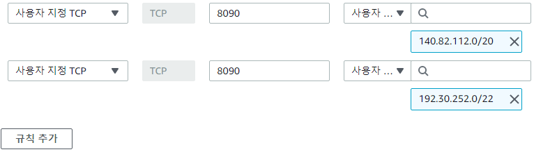 Github가 EC2의 Jenkins를 호출해야 되서, 젠킨스 포트를 허용해줘야 합니다.
