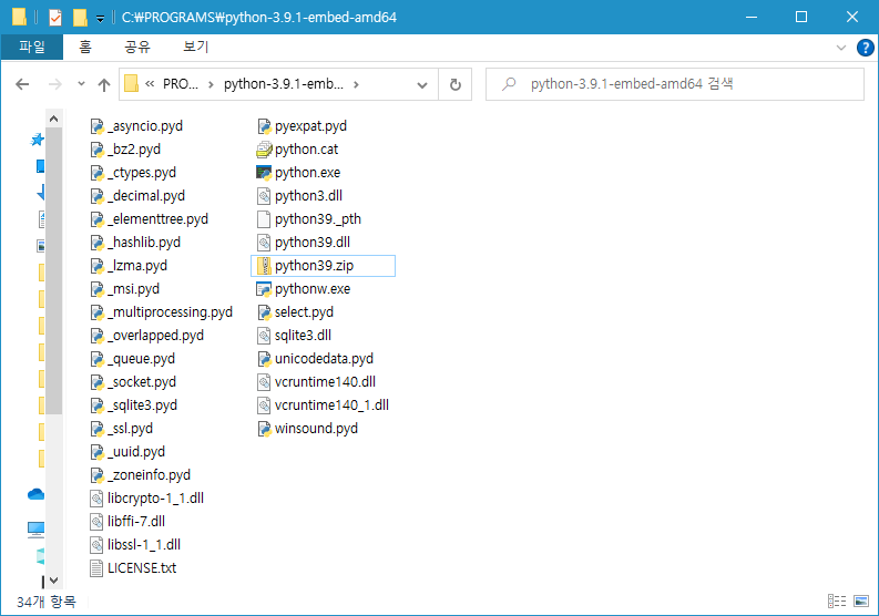 저는 C:\PROGRAMS\C:\PROGRAMS\python-3.9.1-embed-amd64로 정했습니다.