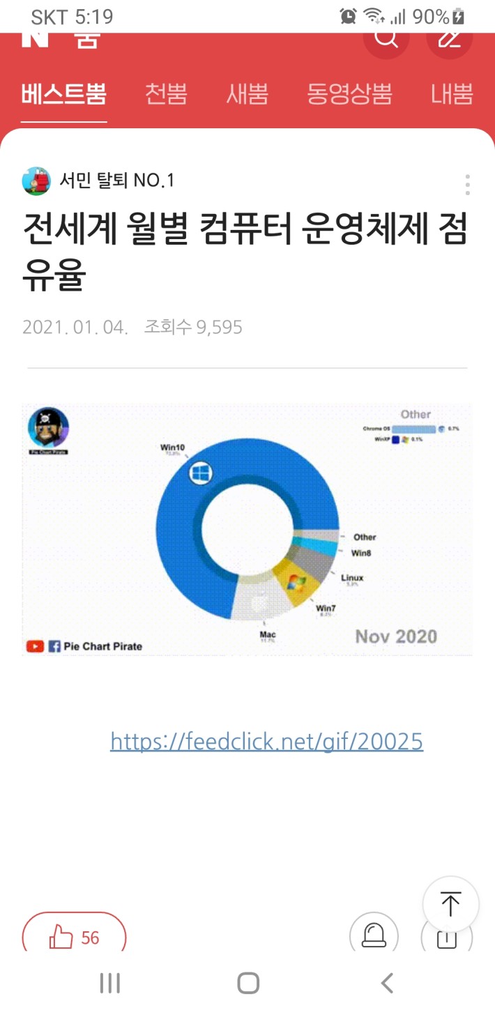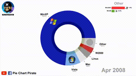 [윈도우/맥/리눅스] 2008년 4월 ~ 2020년 11월, 전세계 월별 컴퓨터 운영체제 점유율