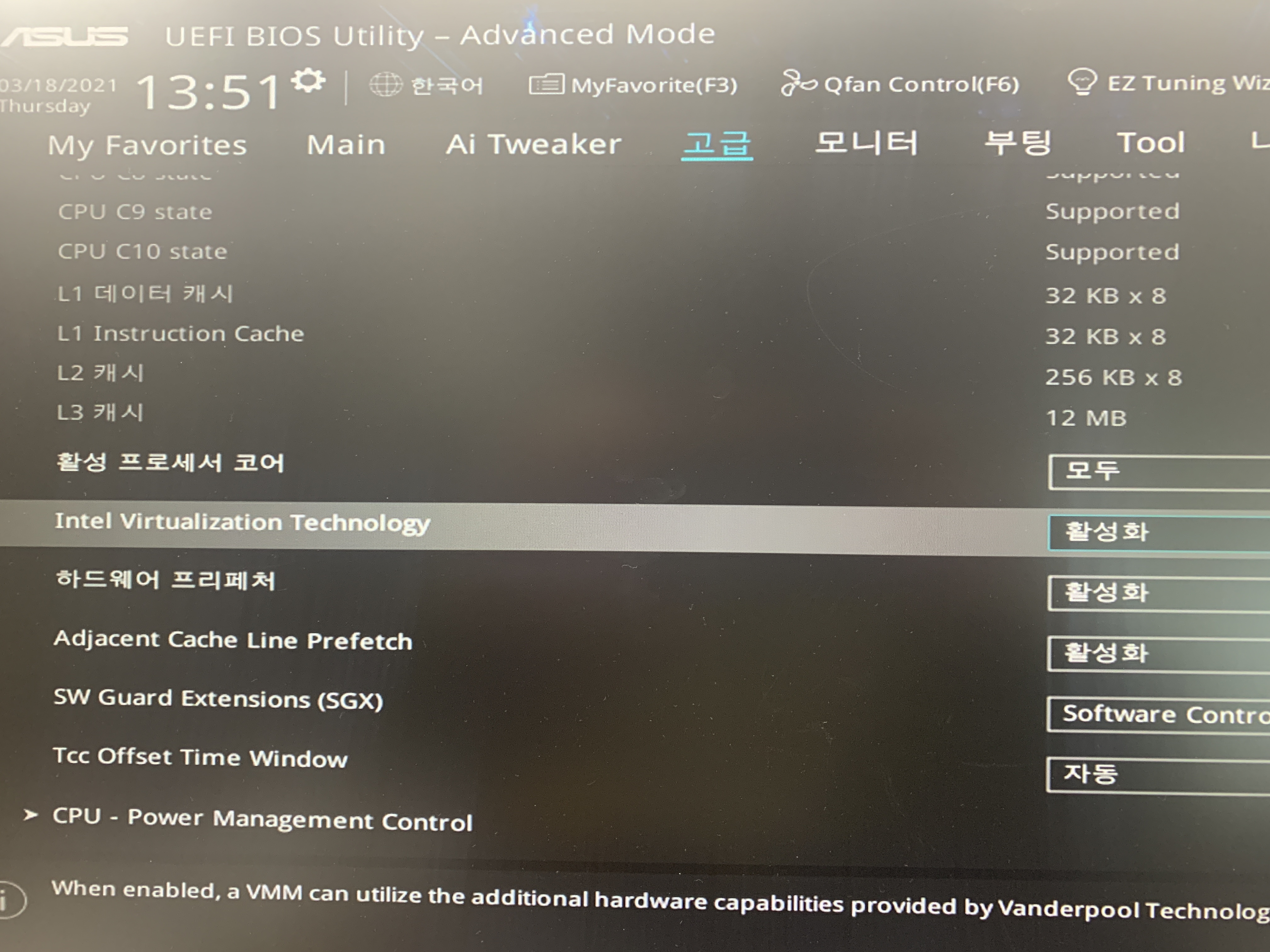 아서스 바이오스 인텔 가상화 기술 활성화, Asus Bios Intel VT (Virtualization Technology)