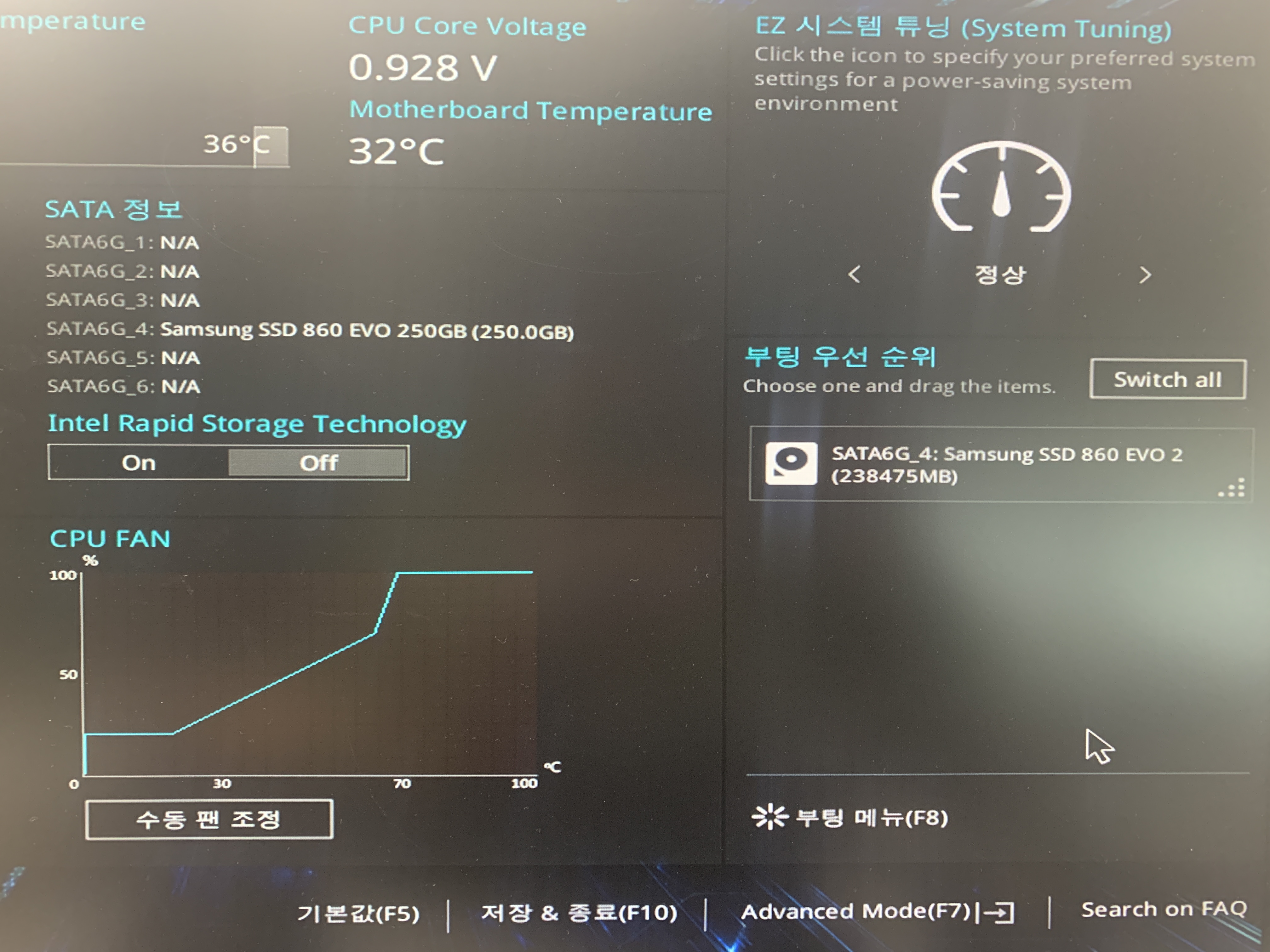 스샷은 아서스 메인보드 바이오스 화면 입니다.