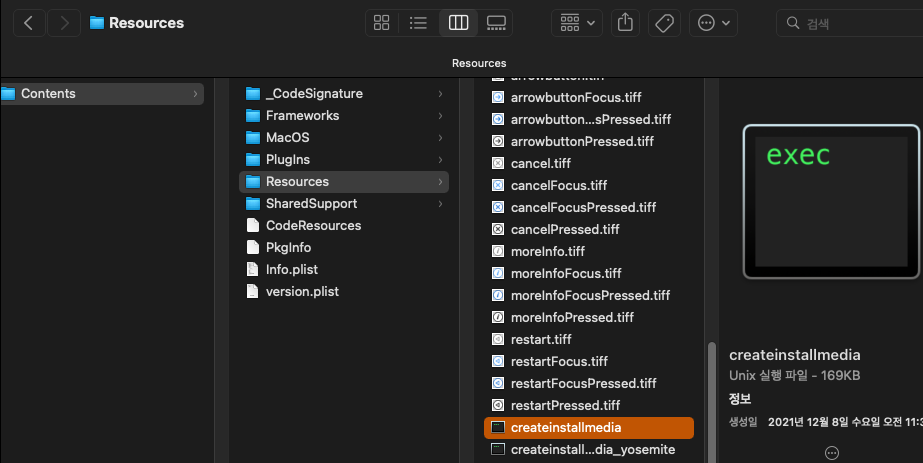 7. Contents > Resources > createinstallmedia를 터미널로 드래그