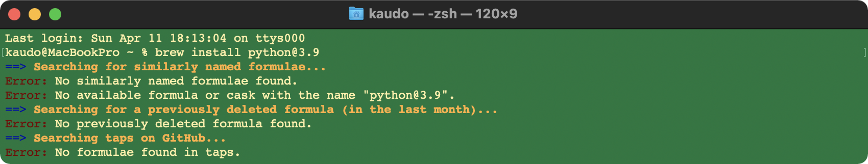 [MAC] 홈브루 파이썬 설치 에러, HomeBrew Error: No similarly named formulae found. Error: No available formula or cask with the name “python”