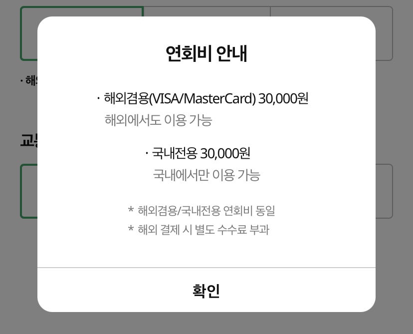 연회비 안내 국내/비자/마스터 전부 3만원이네요.