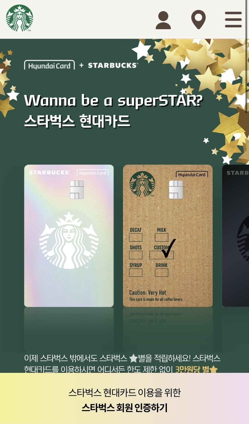 스타벅스 Caution! 별적립 현대카드 만들기