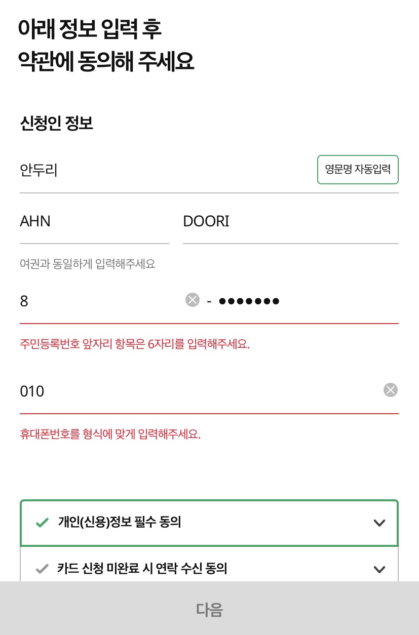 신분증 정보 입력
