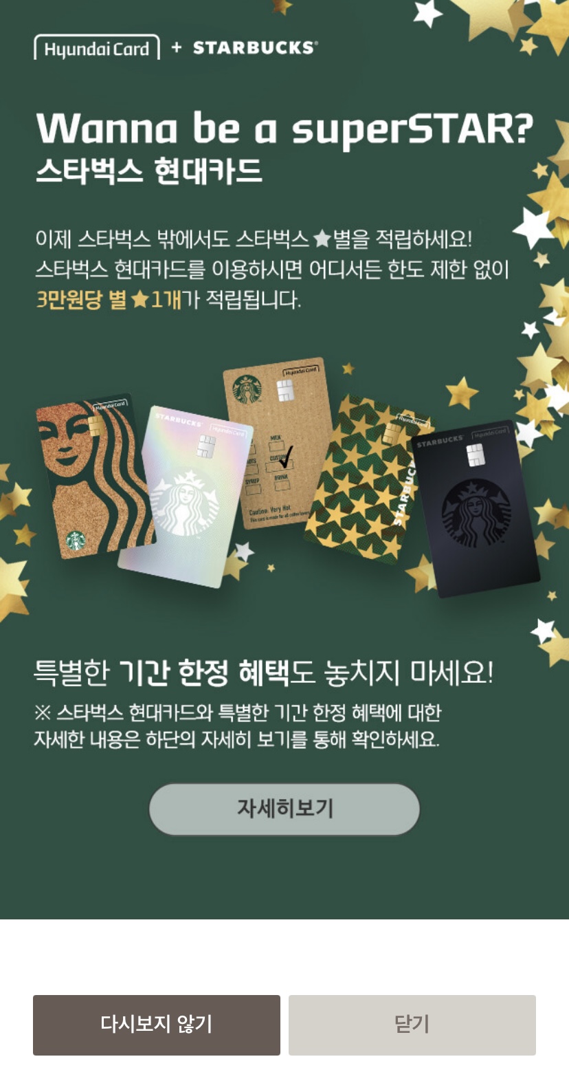 스타벅스에서 현대카드가 나왔습니다. (현대카드에서 스타벅스 카드가 나온건지)