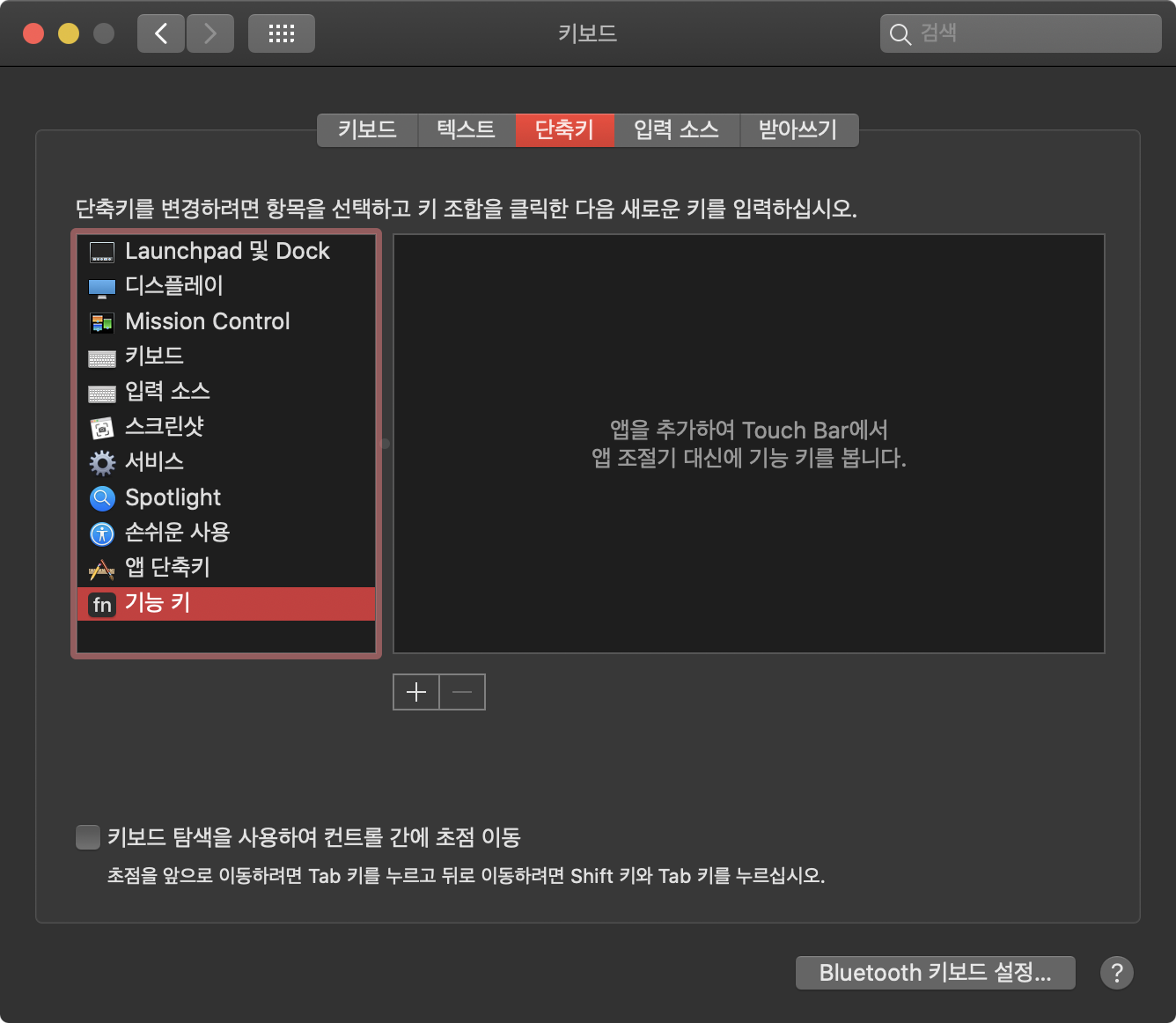 1. 사과 > 시스템 환경설정 > 키보드 > 단축키