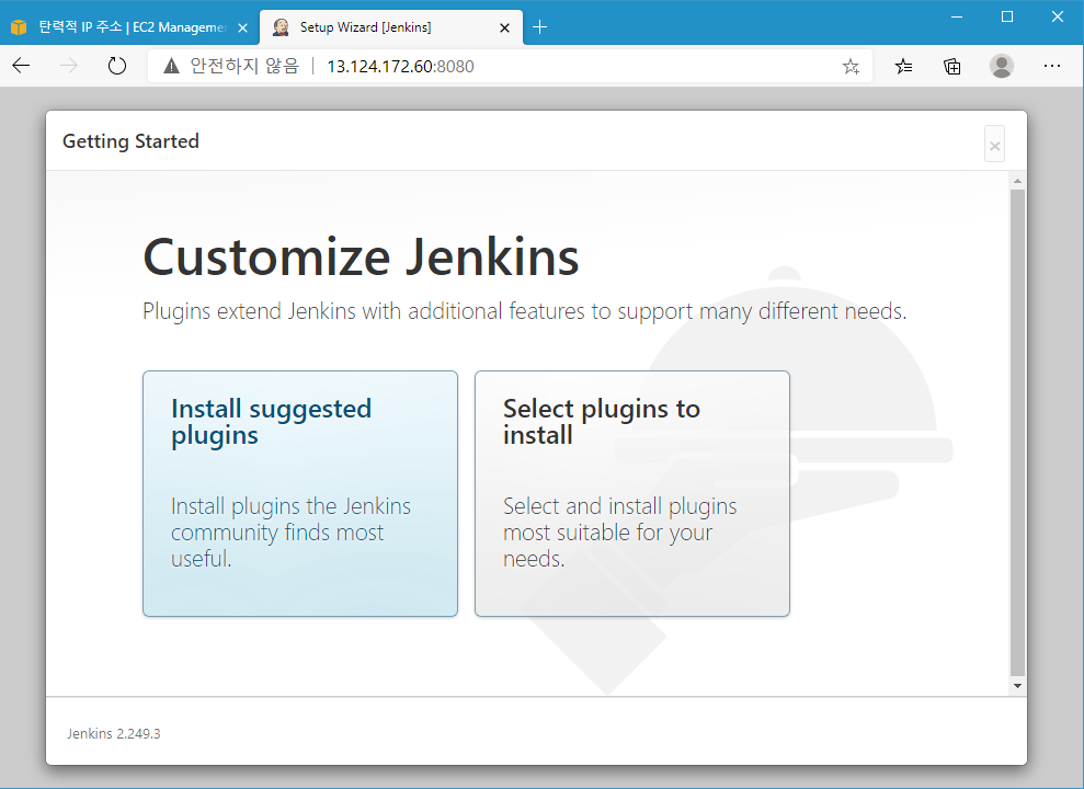 기본 플러그인을 설치, 시간이 좀 걸립니다.