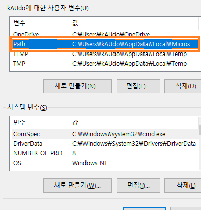 1. 탐색기 > 내 PC (오른쪽클릭) > 속성 > 고급 시스템 설정 > 환경 변수