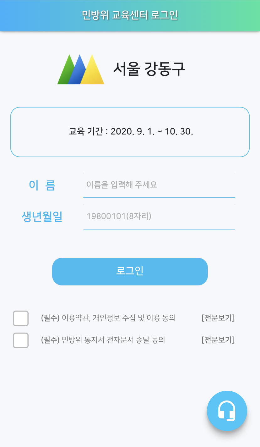 이번 민방위는 동영상 시청 후 문제를 푸는 방식입니다.