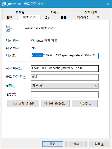 그런데 제가 자주사용하는 jmeter프로그램은 실행을 bat로 해야 합니다.