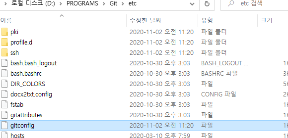 3. gitconfig편집 > sslCAInfo 값을 자신의 경로에 맞게 변경