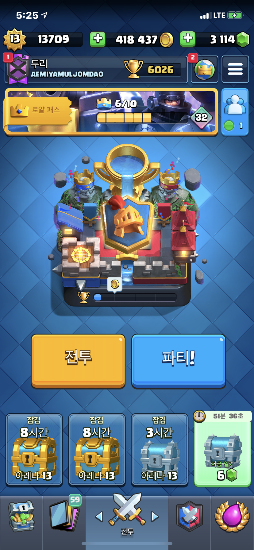 6. 클랜전을 하면 24시간동안 기다려야하고, 첫 전투 후 24시간 이후에 전체덱 4개가 모두 리셋됩니다.