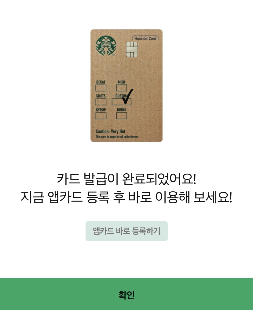 스타벅스 Caution! 별적립 현대카드 만들기