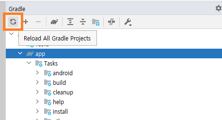 1. Gradle 탭을 열어서 리프레시버튼을 클릭합니다.