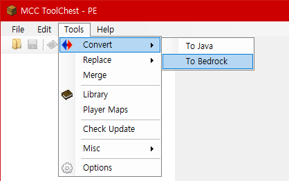 2. MCC ToolChest 실행 > Tools > To Bedrock