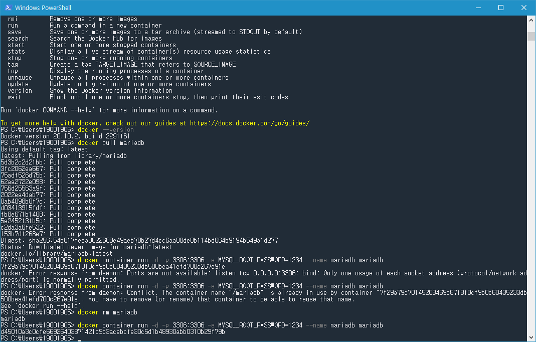 - 2021.03.17 윈도우10 도커에 마리아디비 설치, Install MariaDb on Docker Windows 10 10