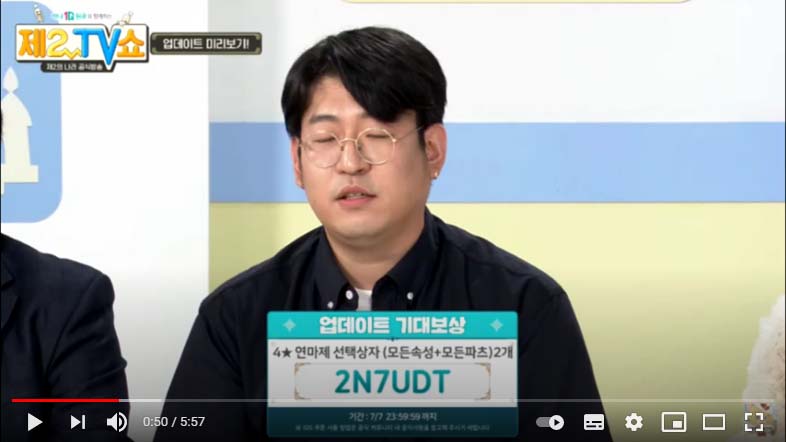쿠폰번호는 설정 > 기타 > 쿠폰입력 > 공식방송 제2TV쇼 이벤트 쿠폰