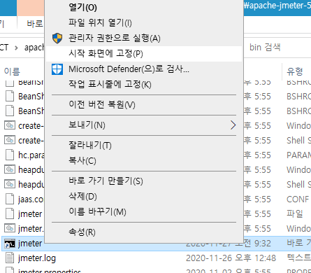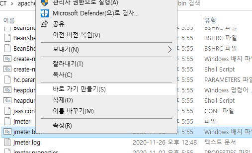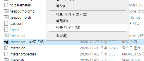 그런데 제가 자주사용하는 jmeter프로그램은 실행을 bat로 해야 합니다.