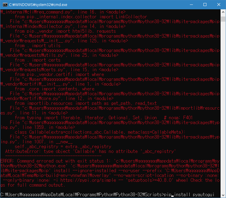오류 메세지중에 PIP를 업그레이드해보라고 적혀있습니다.