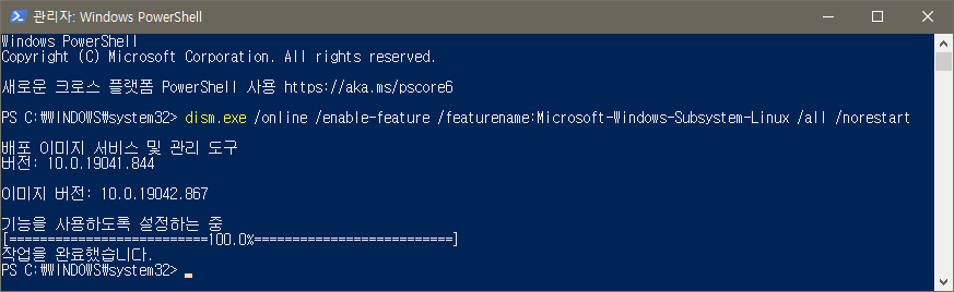 dism.exe /online /enable-feature /featurename:Microsoft-Windows-Subsystem-Linux /all /norestart