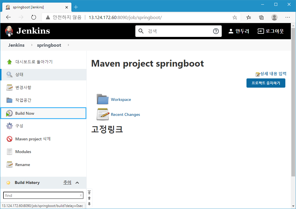 8. 젠킨스 > 빌드히스토리에 저절로 빌드되는지 확인