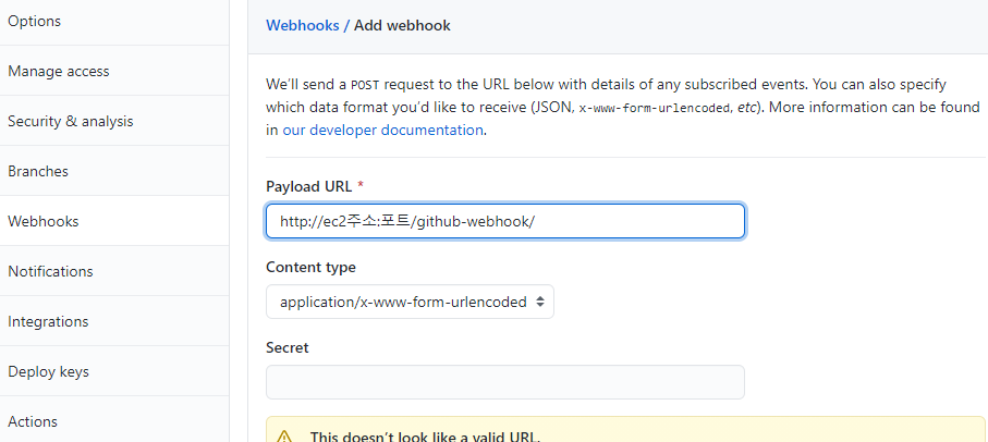 3. 프로젝트 Github > Settings > Webhooks > Add webhook